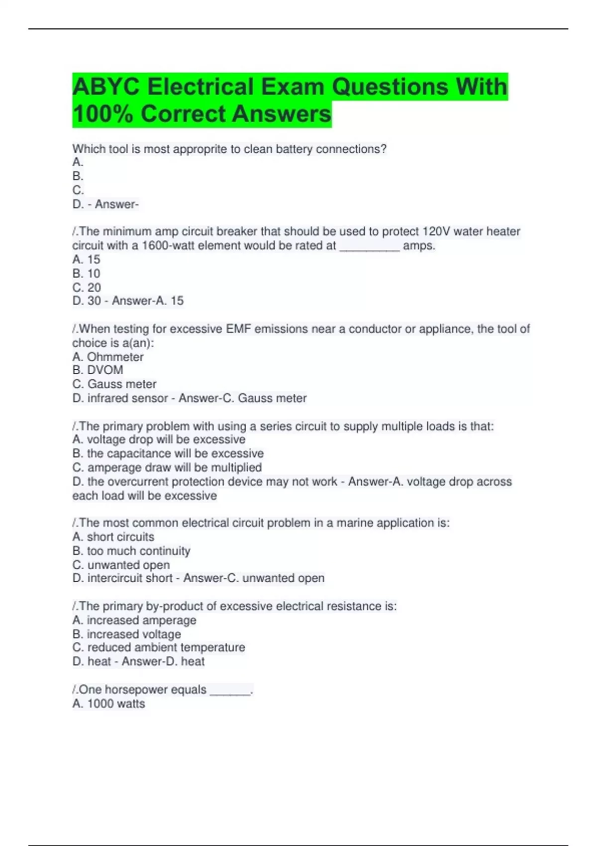 D. undersized wire, loose connections, and corrosion. - Answer-D. undersized wire,