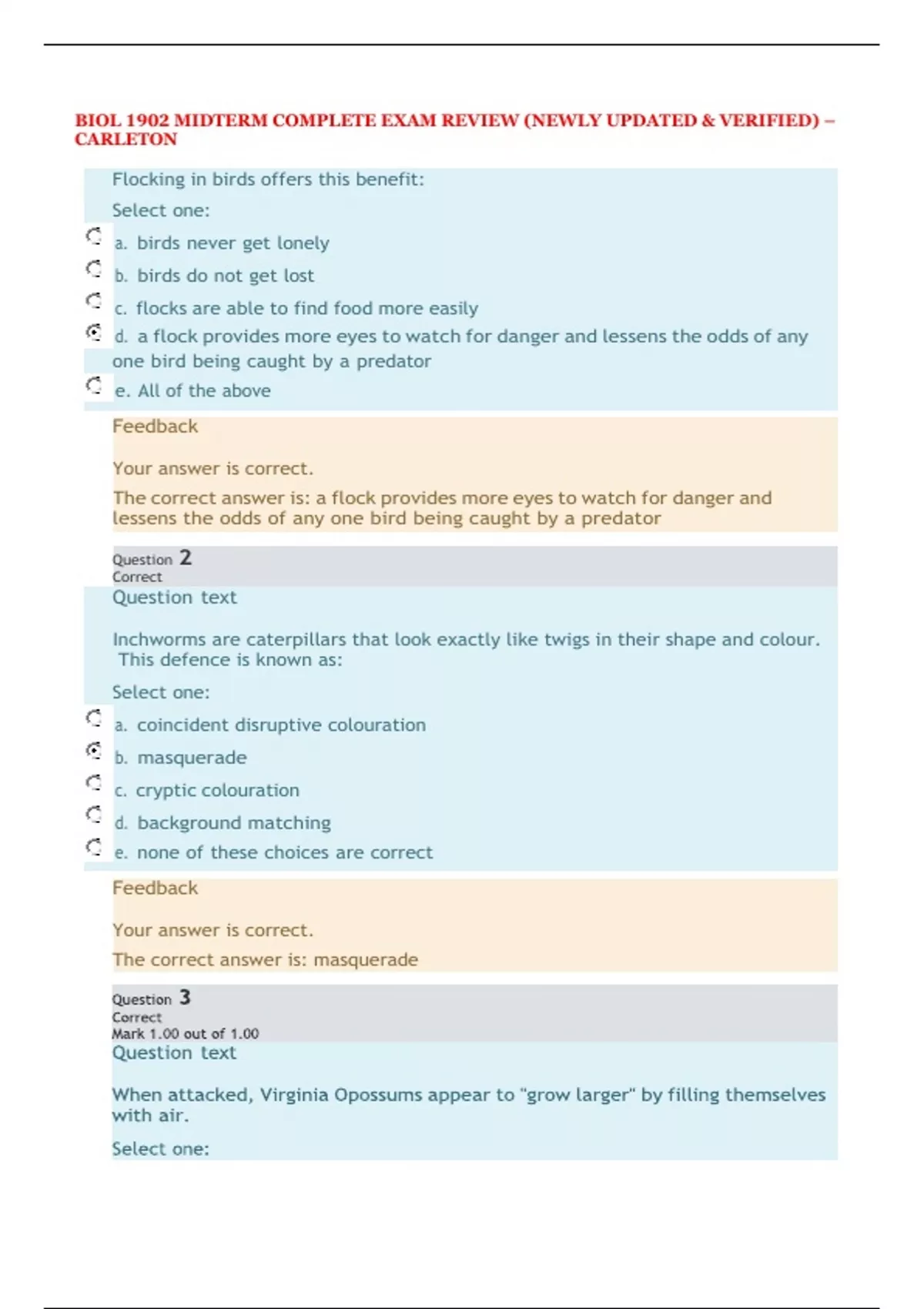 BIOL 1902 MIDTERM COMPLETE EXAM REVIEW (NEWLY UPDATED & VERIFIED) – CARLETON