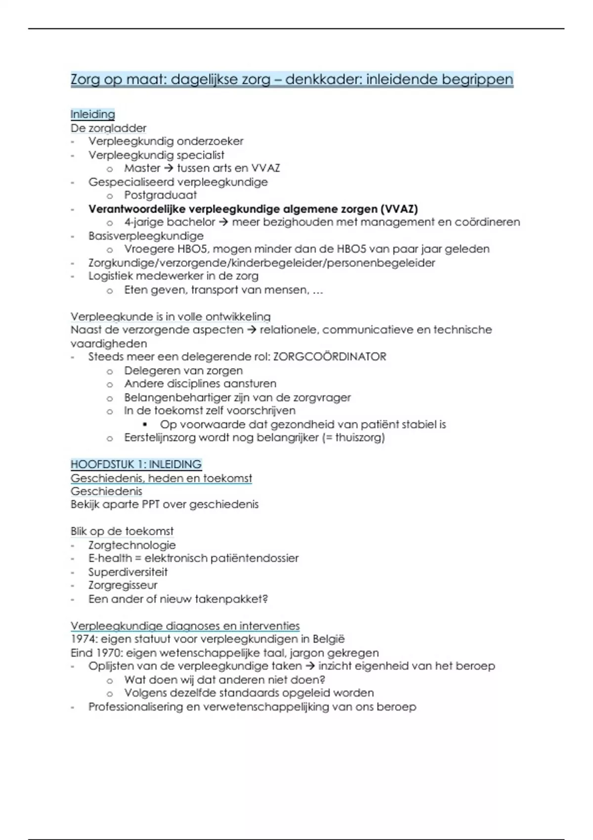 samenvatting zorgthema 1: dagelijkse zorg - denkkader inleidende begrippen - geschiedenis - infectiepreventie - maatregelen - rughygiëne