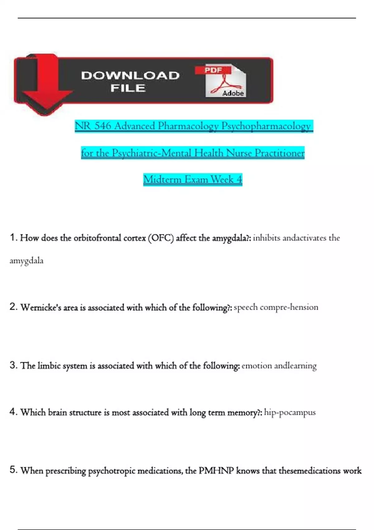 5. When prescribing psychotropic medications, the PMHNP knows that thesemedications work