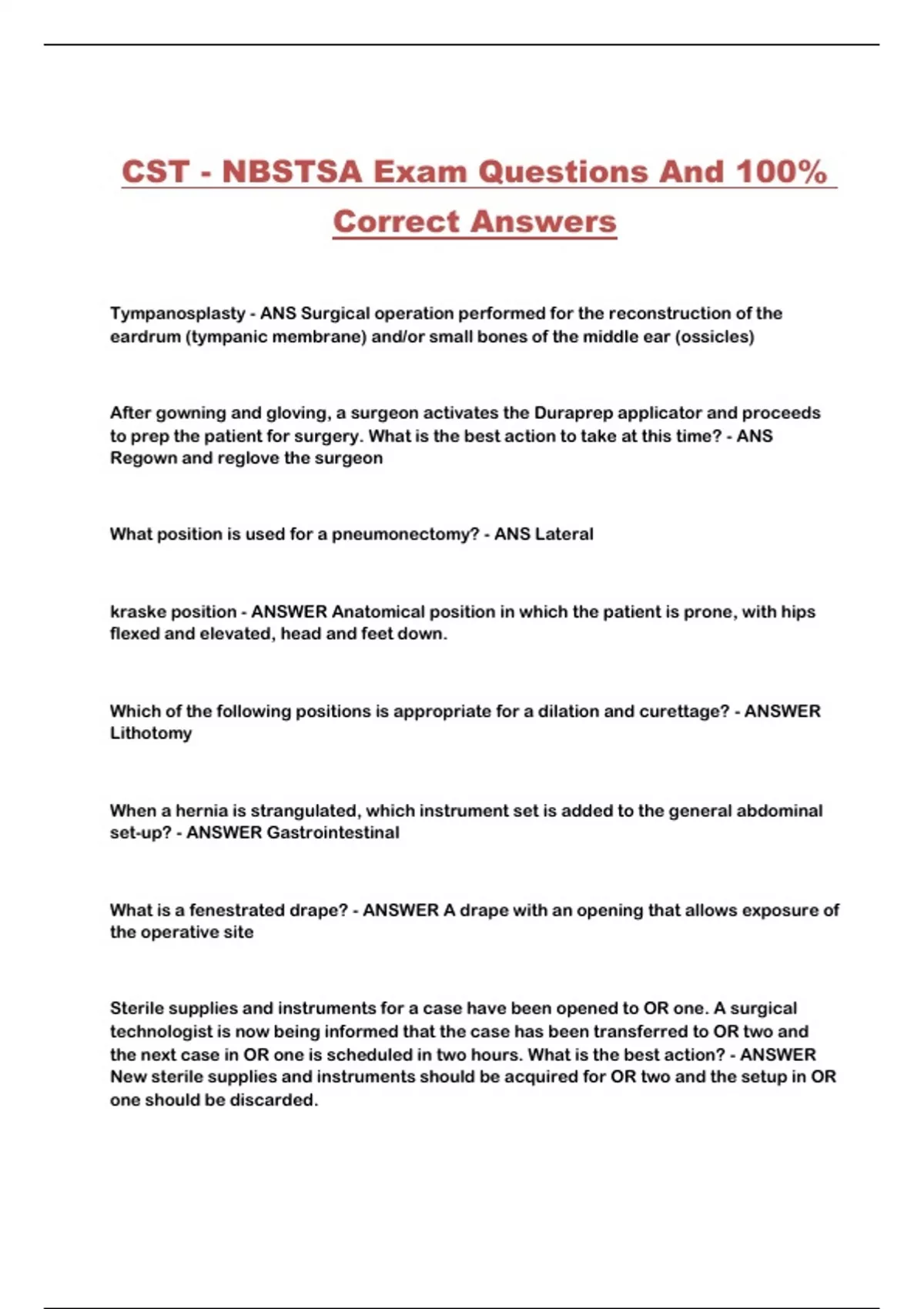 CST - NBSTSA Exam Questions And 100%