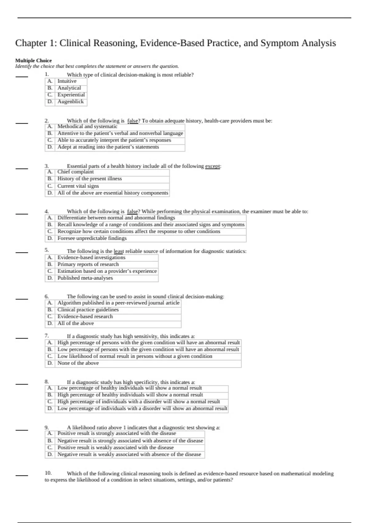 Chapter 1: Clinical Reasoning, Evidence-Based Practice, and Symptom Analysis