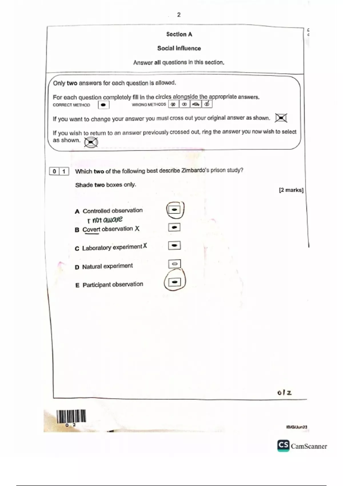 Aqa alevel psychology 2023 paper 1 (completed and