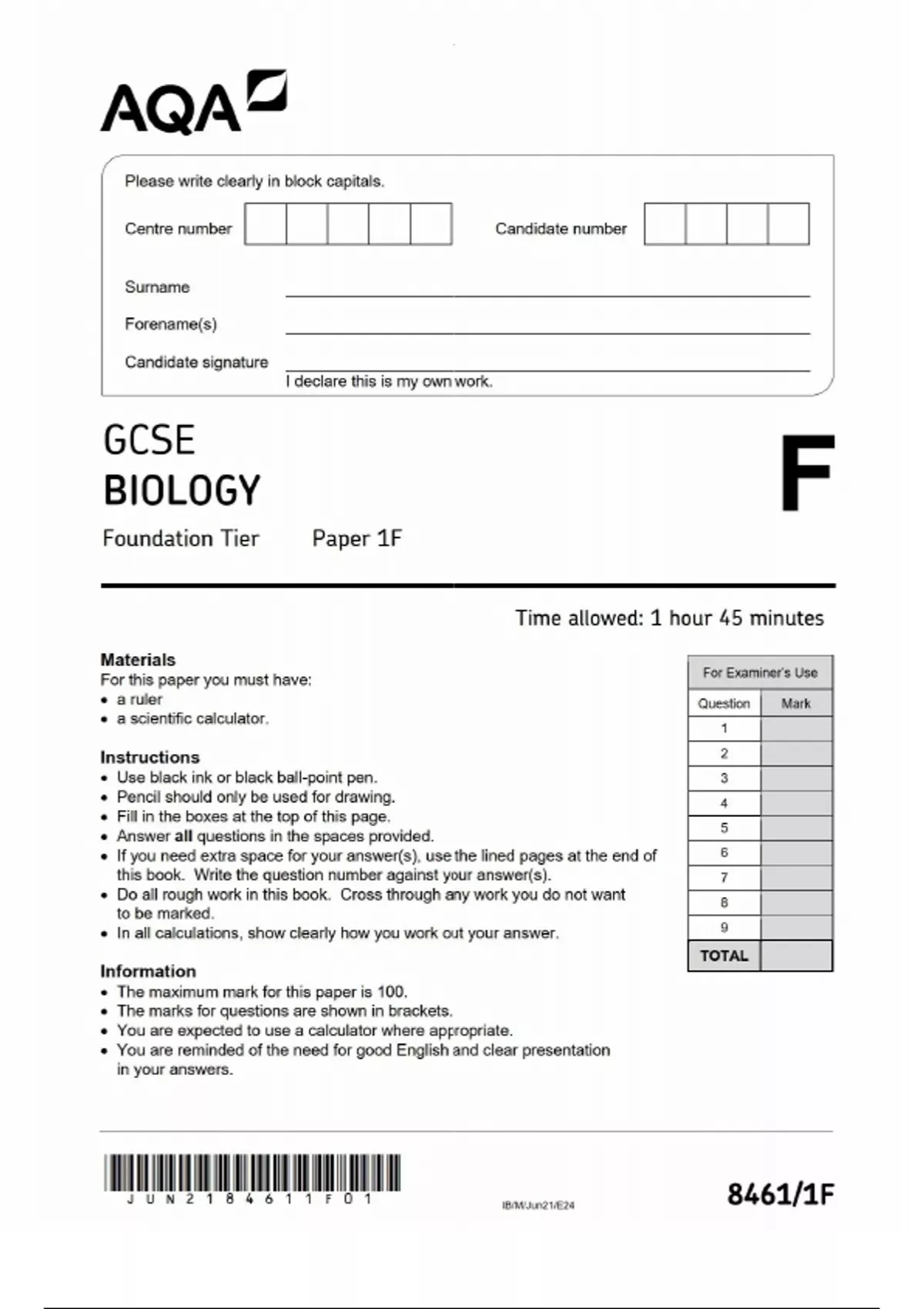 Aqa gcse biology patper 1 foundation questions
