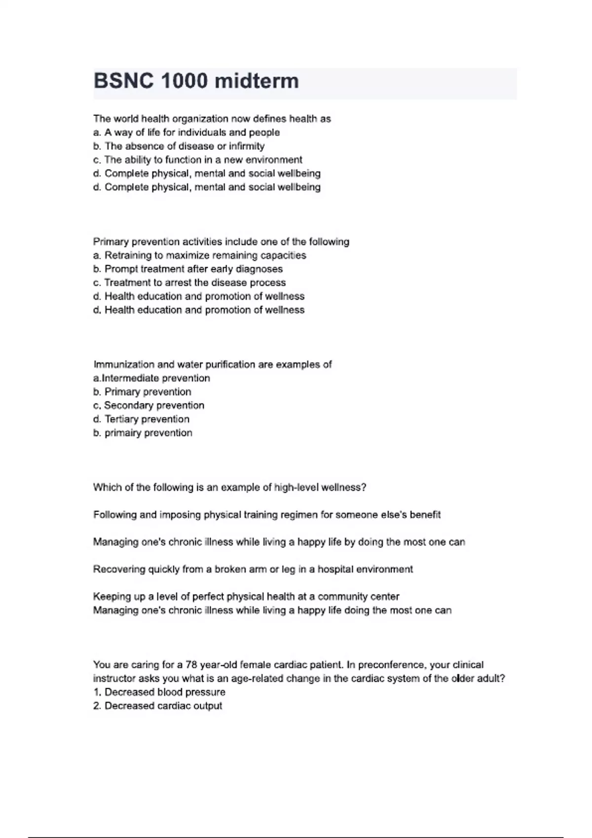 bsnc 1000 midterm questions and answers