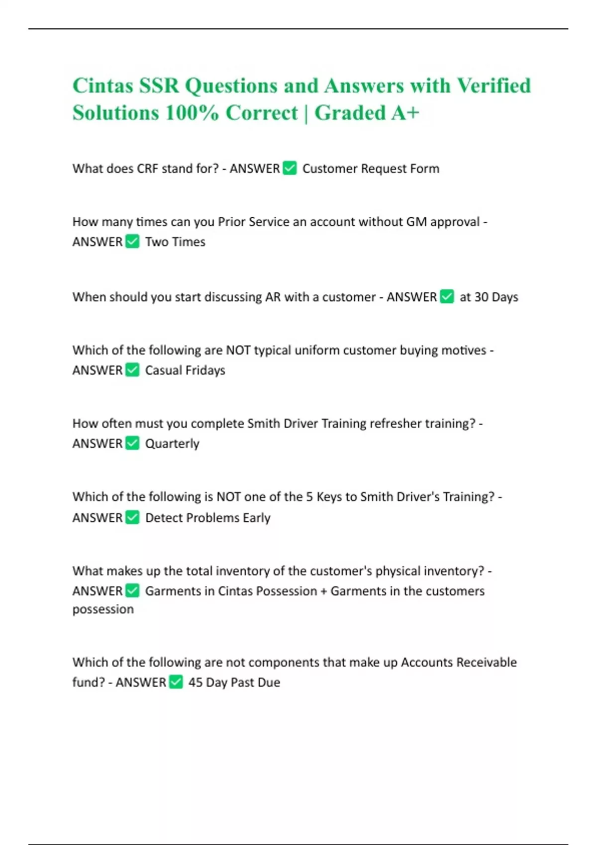 ANSWER Garments in Cintas Possession + Garments in the customers