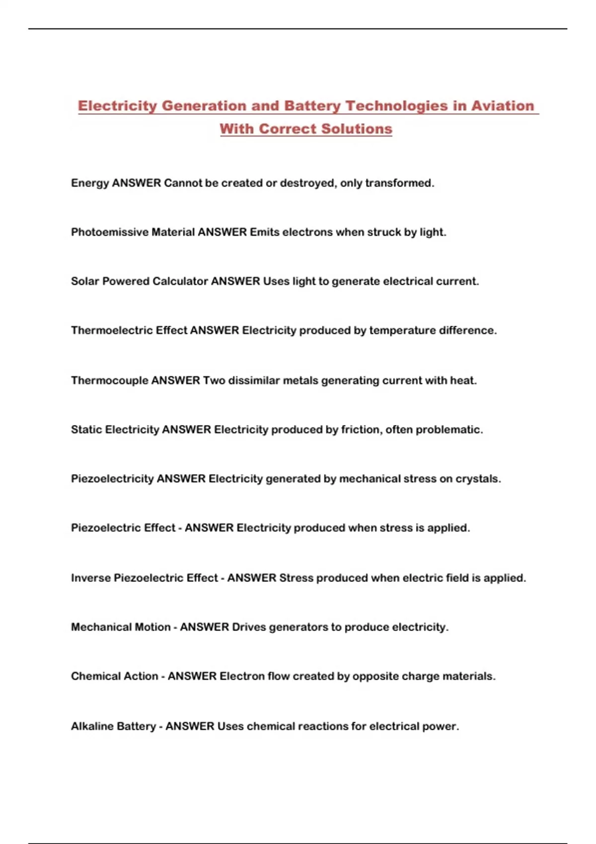 Alkaline Battery - ANSWER Uses chemical reactions for electrical power.