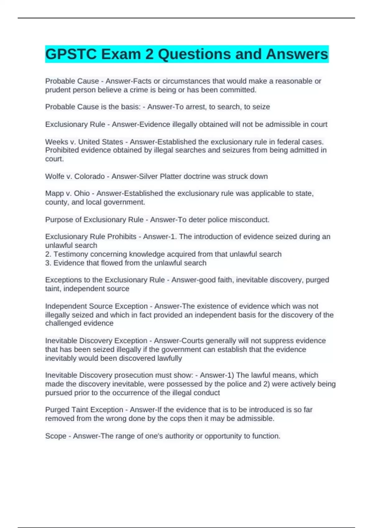 Purpose of Exclusionary Rule - Answer-To deter police misconduct.