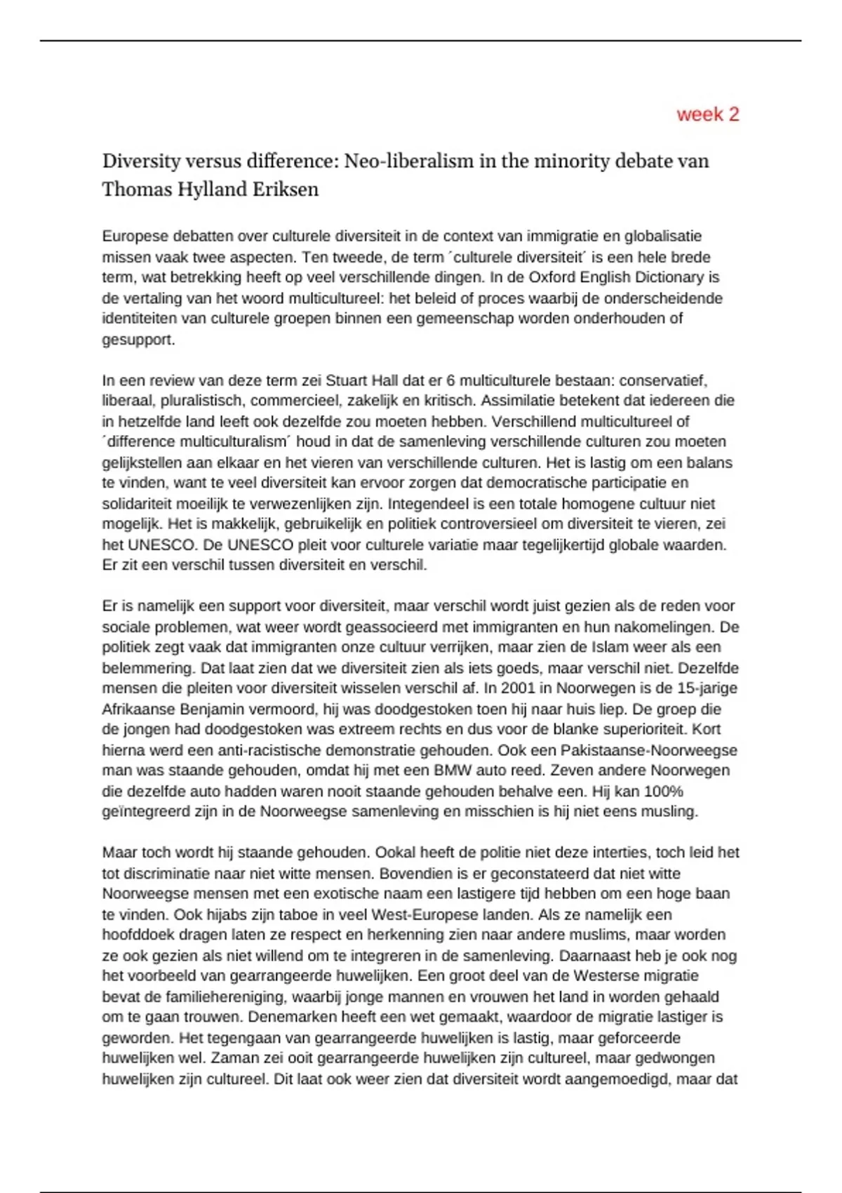 AI samenvatting - Diversity versus Difference: Neo-liberalism in the