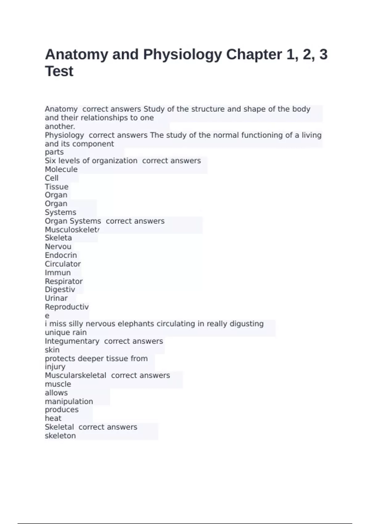 Organ Systems correct answers