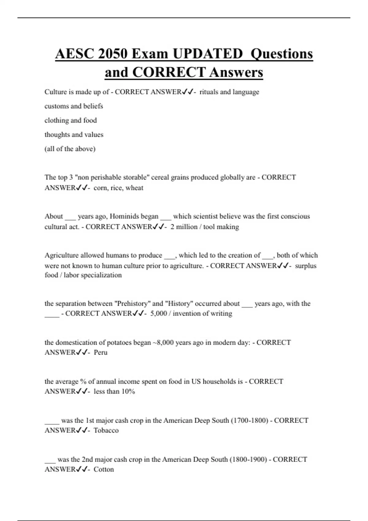 were not known to human culture prior to agriculture. - CORRECT ANSWER✔✔- surplus
