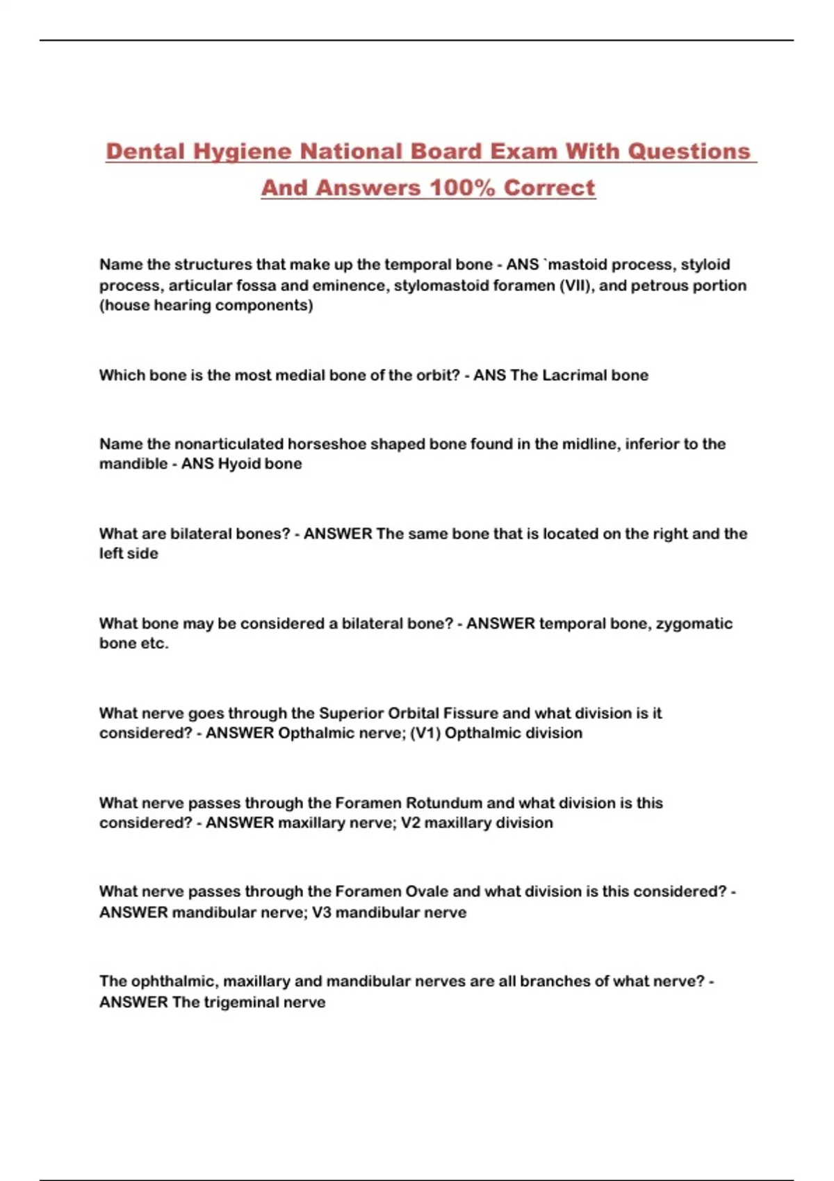 Dental Hygiene National Board Exam With Questions