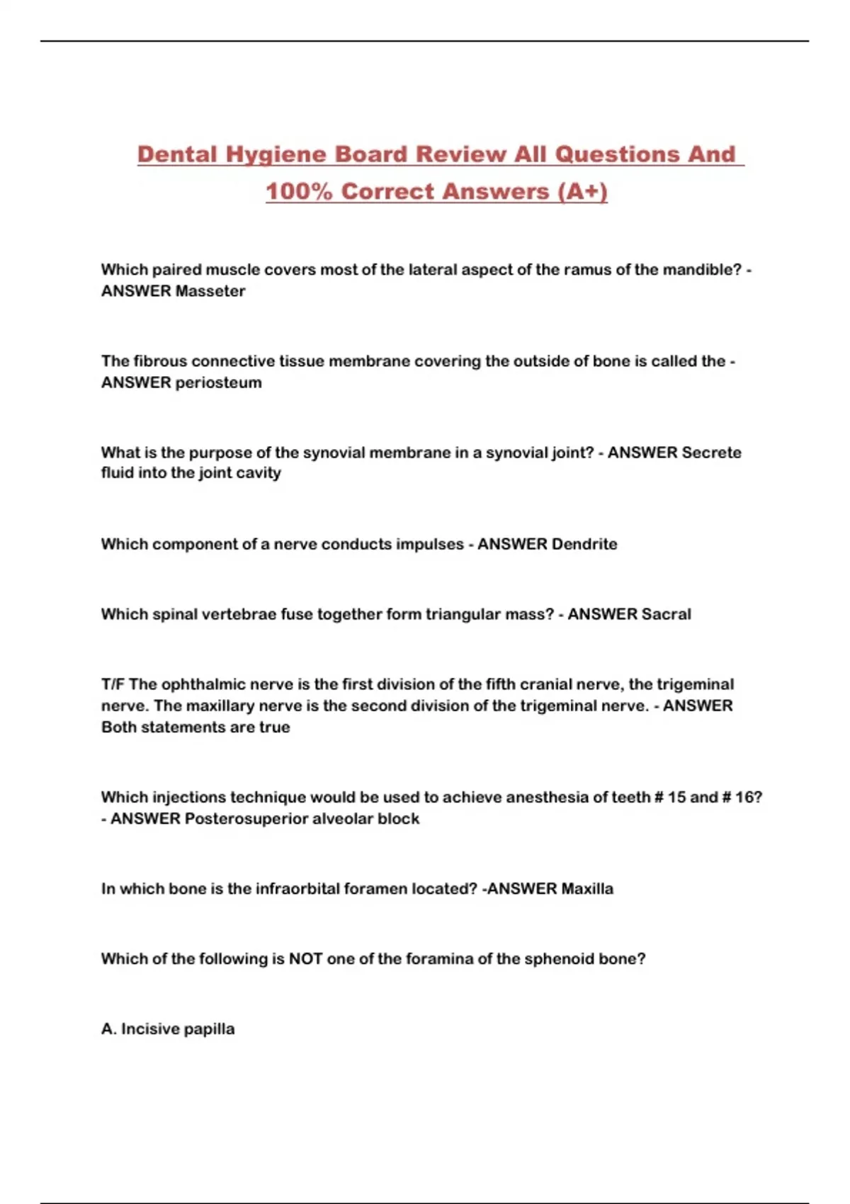 Dental Hygiene Board Review All Questions And