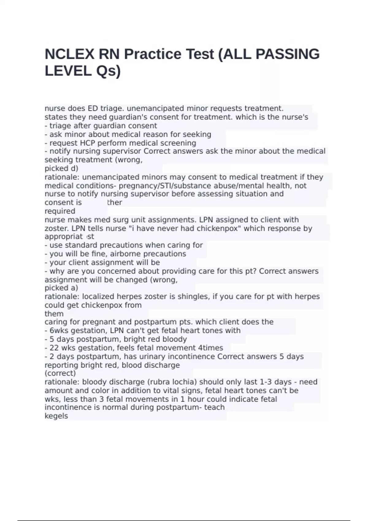 - notify nursing supervisor Correct answers ask the minor about the medical