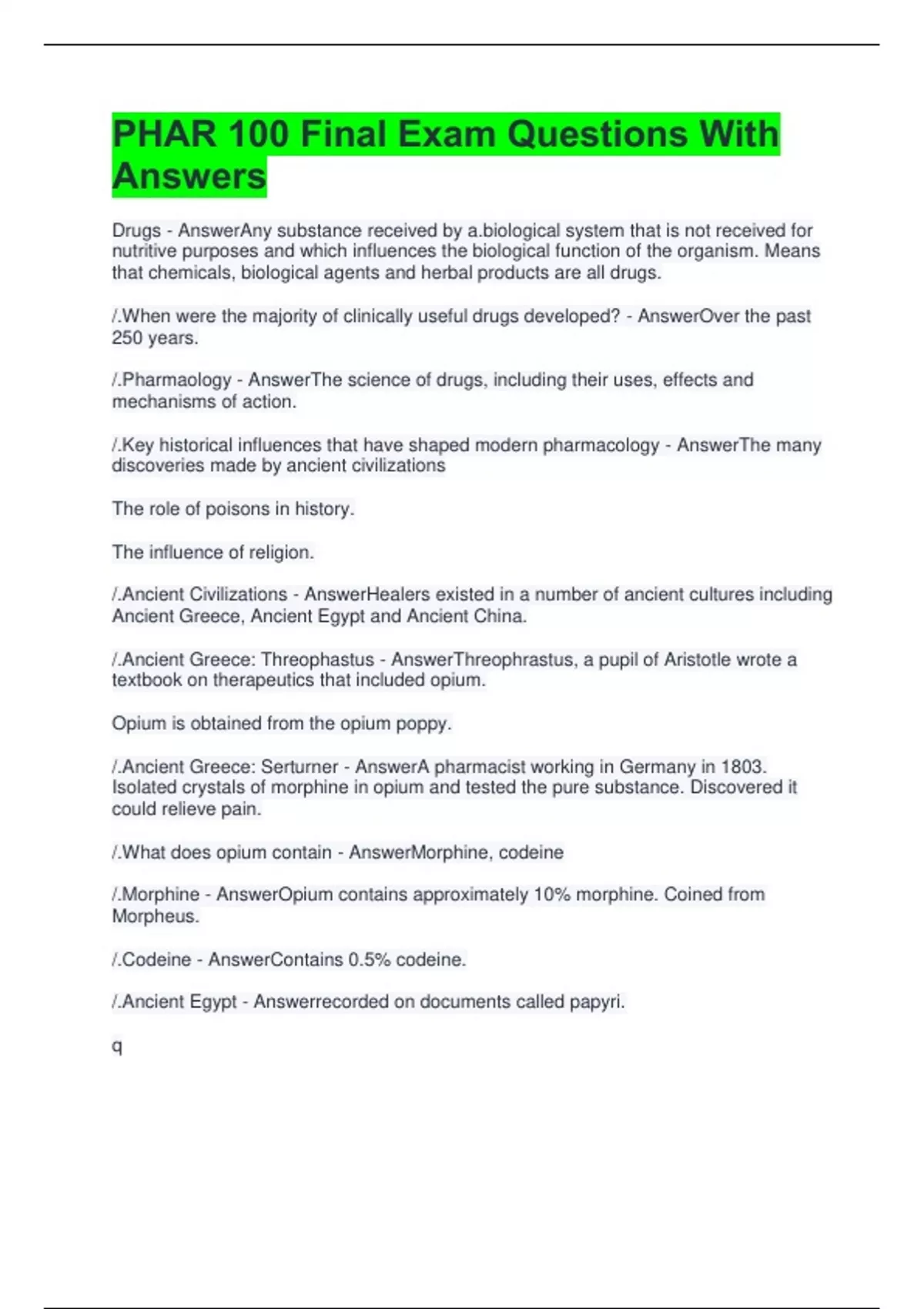 /.Key historical influences that have shaped modern pharmacology - AnswerThe many