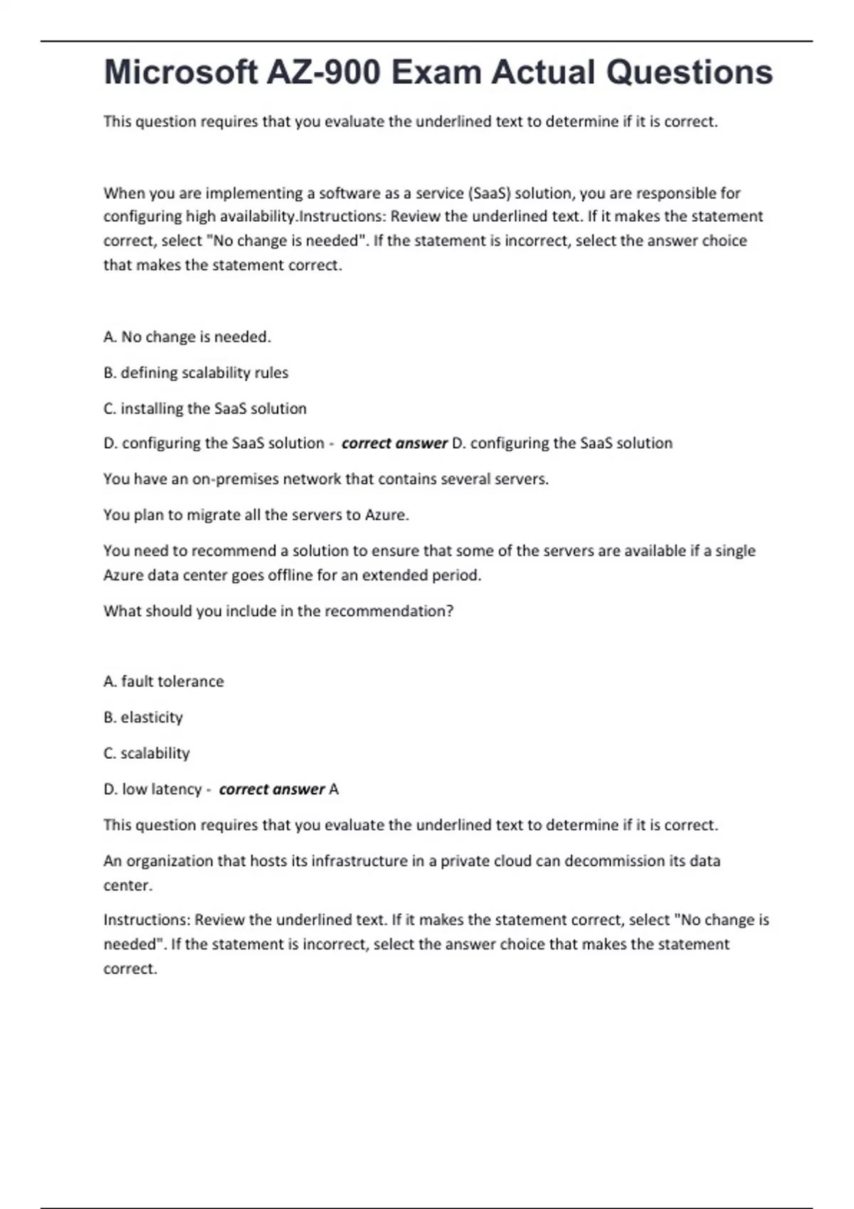,Microsoft AZ-900 Exam Actual Questions