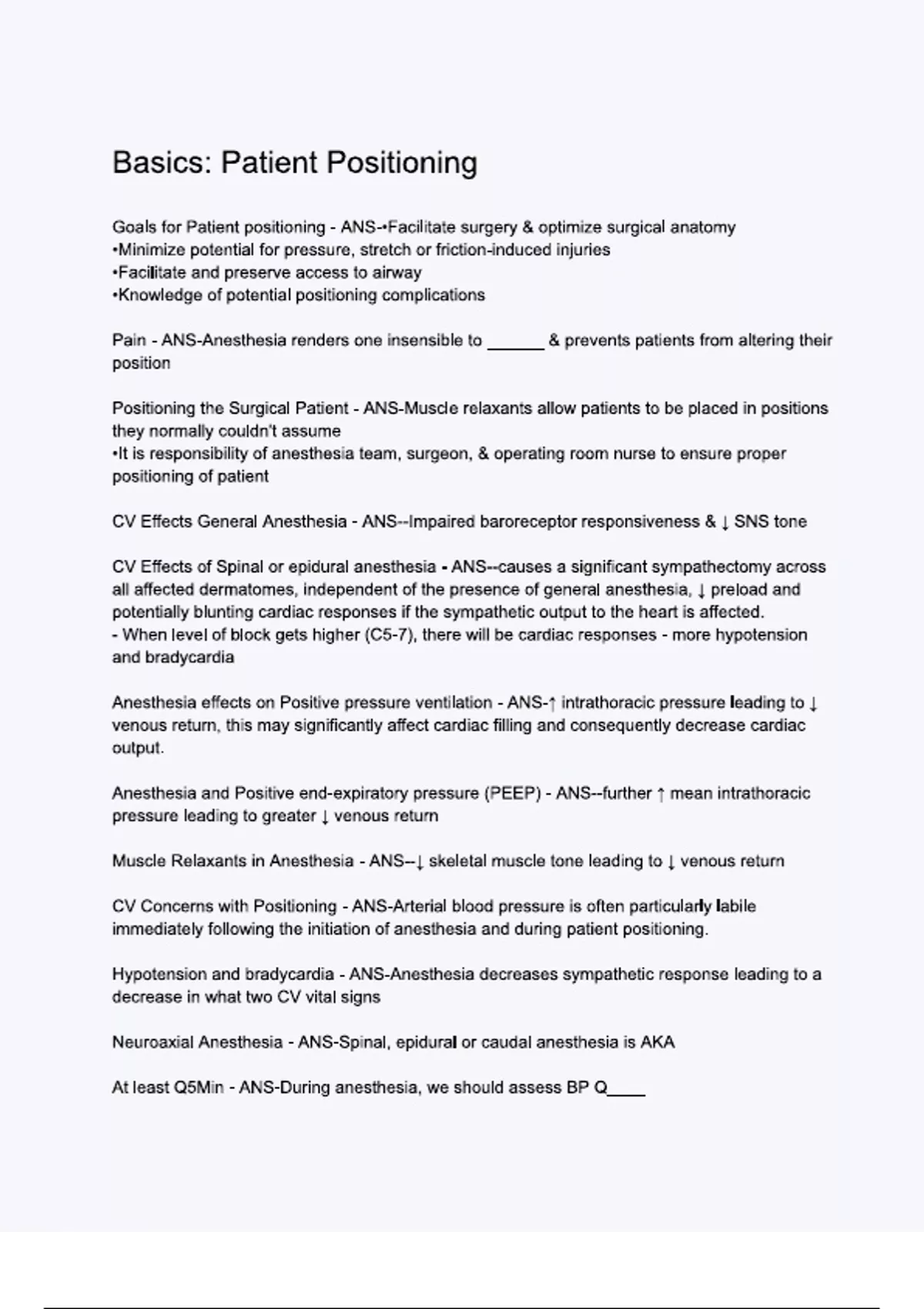 Basics Patient Positioning exam questions with correct answers with complete a+solution 2024/2025