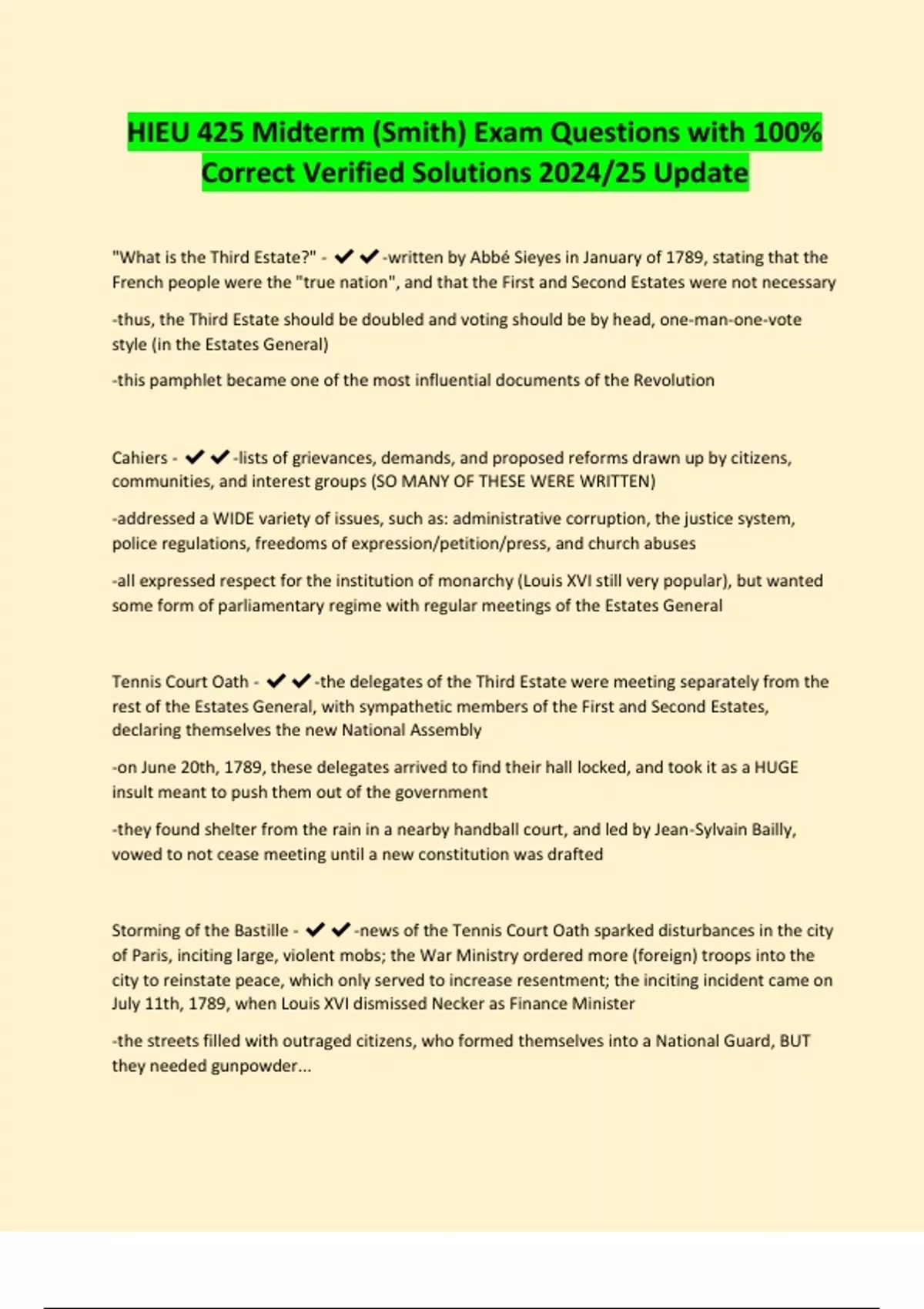 HIEU 425 Midterm (Smith) Exam Questions with 100%