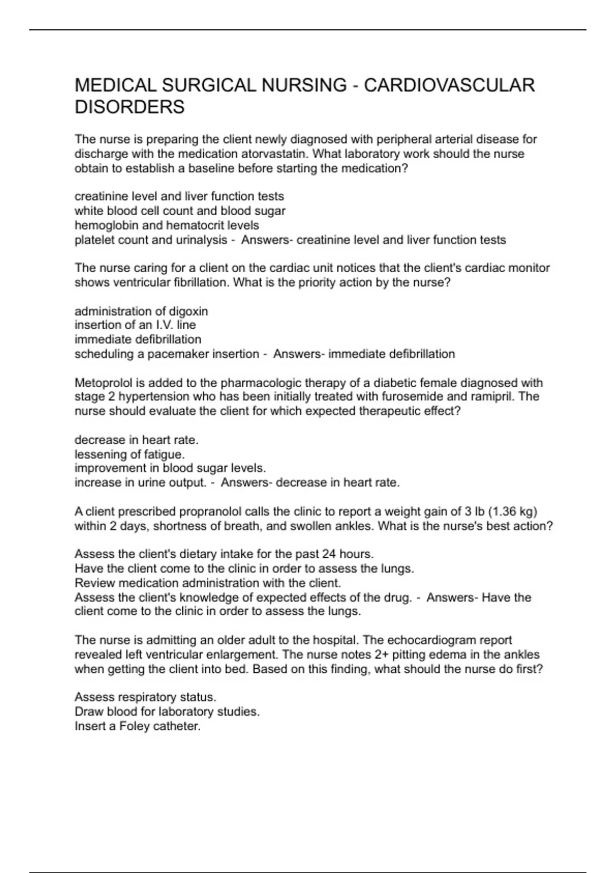MEDICAL SURGICAL NURSING - CARDIOVASCULAR