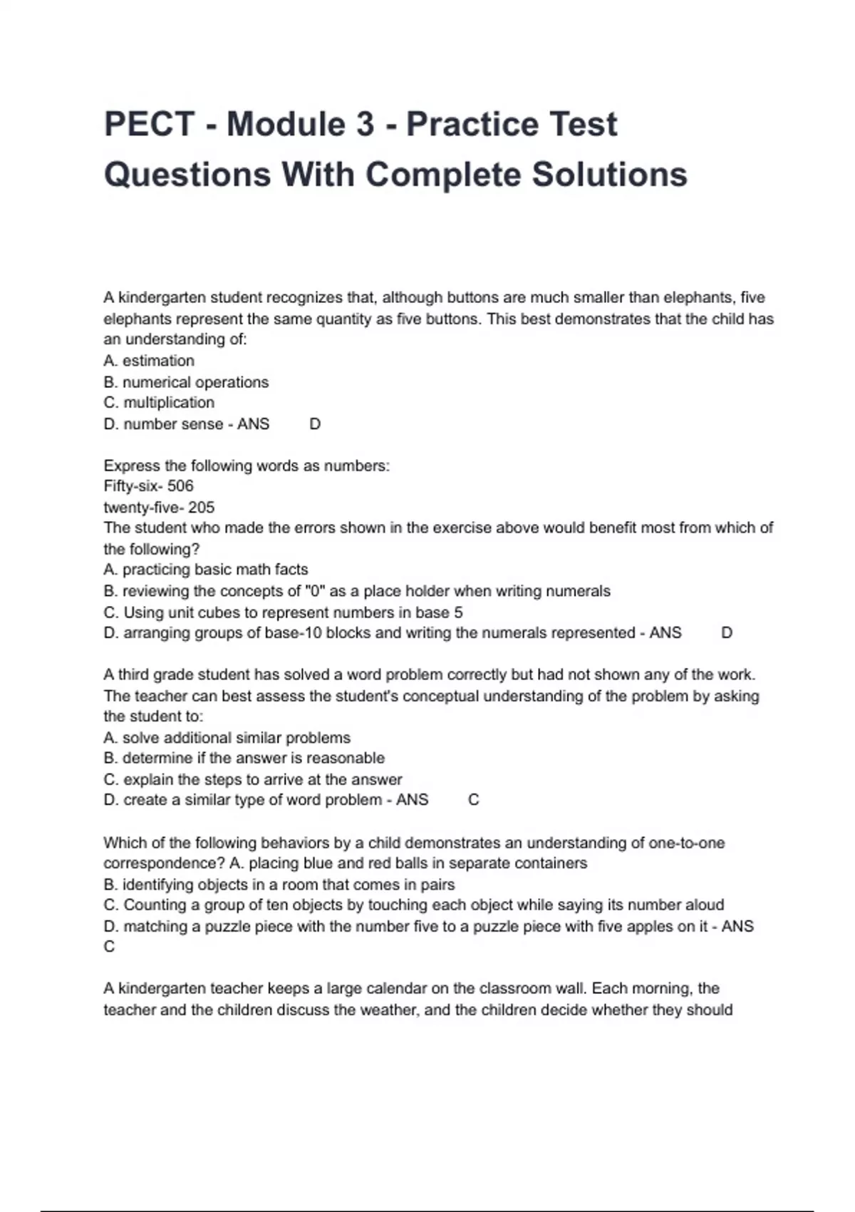 , D. reading and writing whole number up to one million in words and in number form - ANS