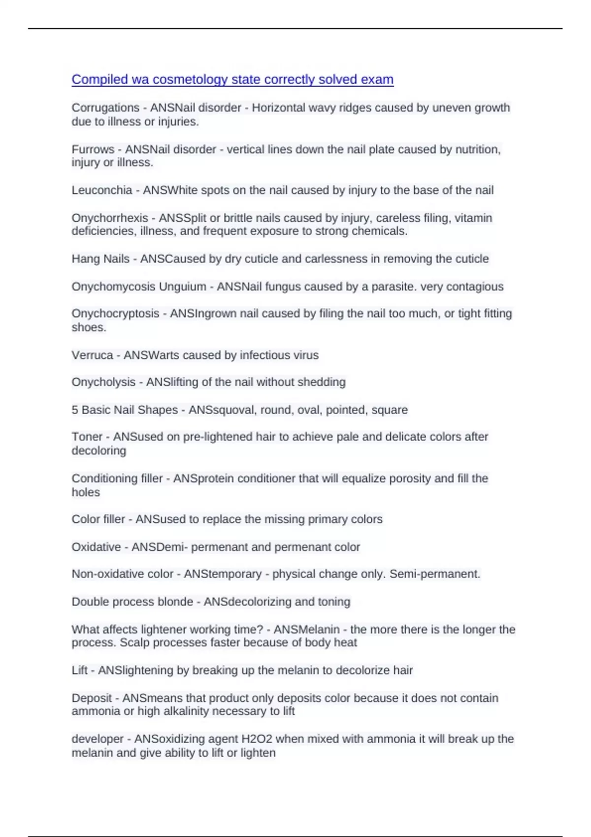 Compiled wa cosmetology state correctly solved exam