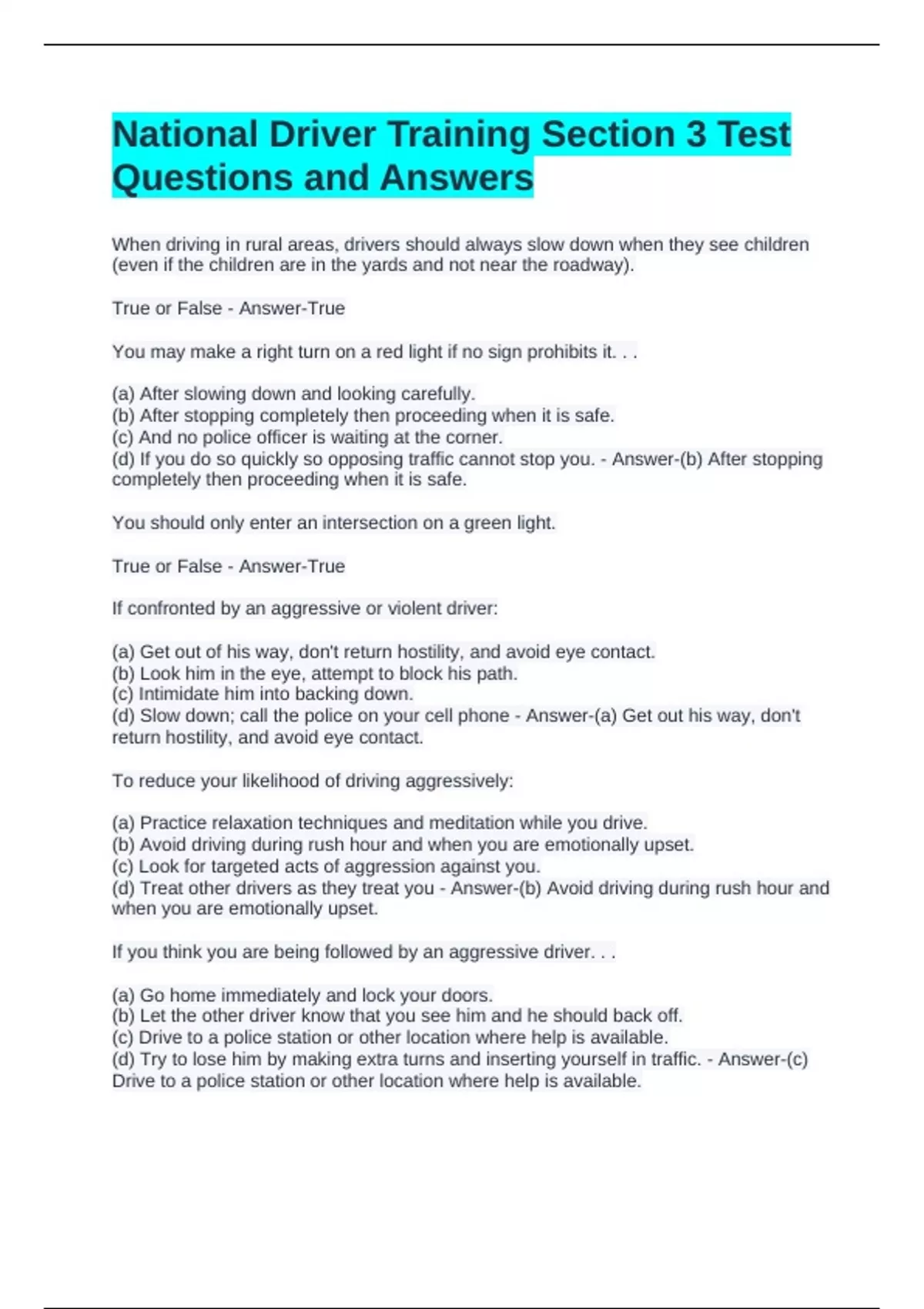 National Driver Training Section 3 Test