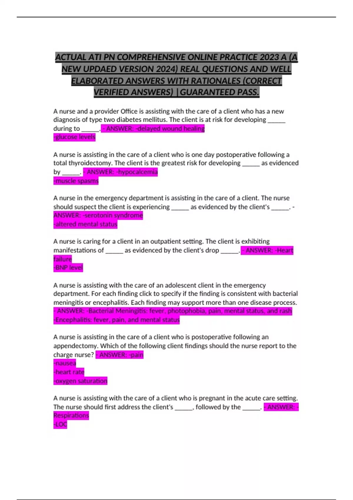 ACTUAL ATI PN COMPREHENSIVE ONLINE PRACTICE 2023 A (A