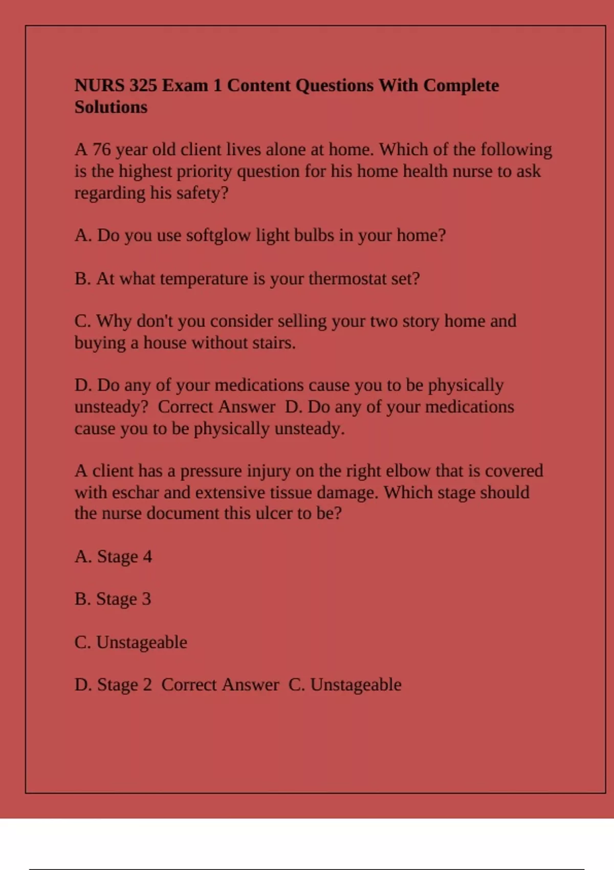 D. Stage 2 Correct Answer C. Unstageable