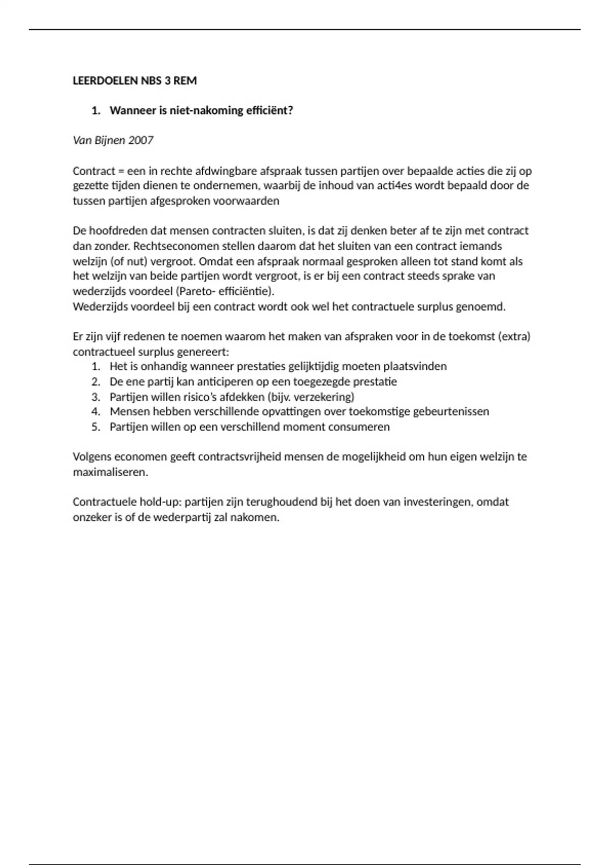 Contract = een in rechte afdwingbare afspraak tussen partijen over bepaalde acties die zij op