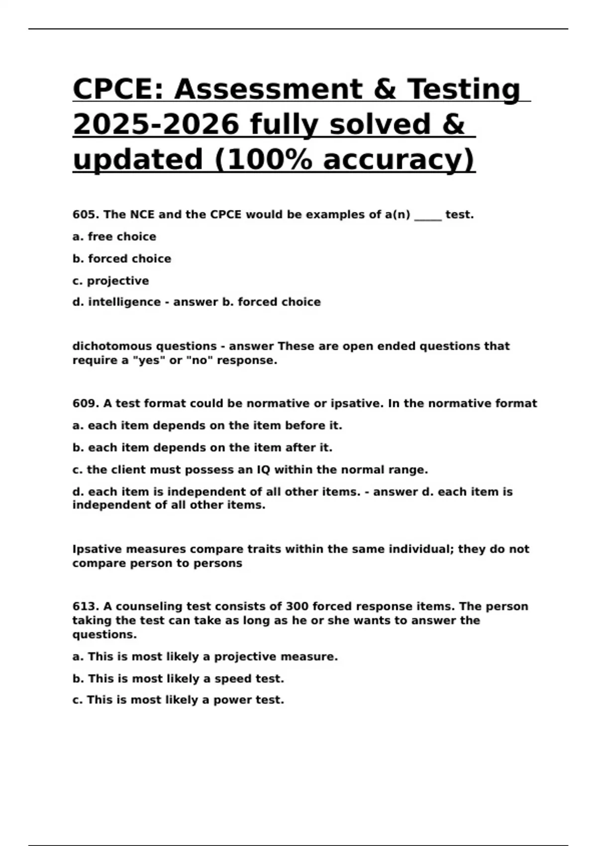 605. The NCE and the CPCE would be examples of a(n) _____ test.