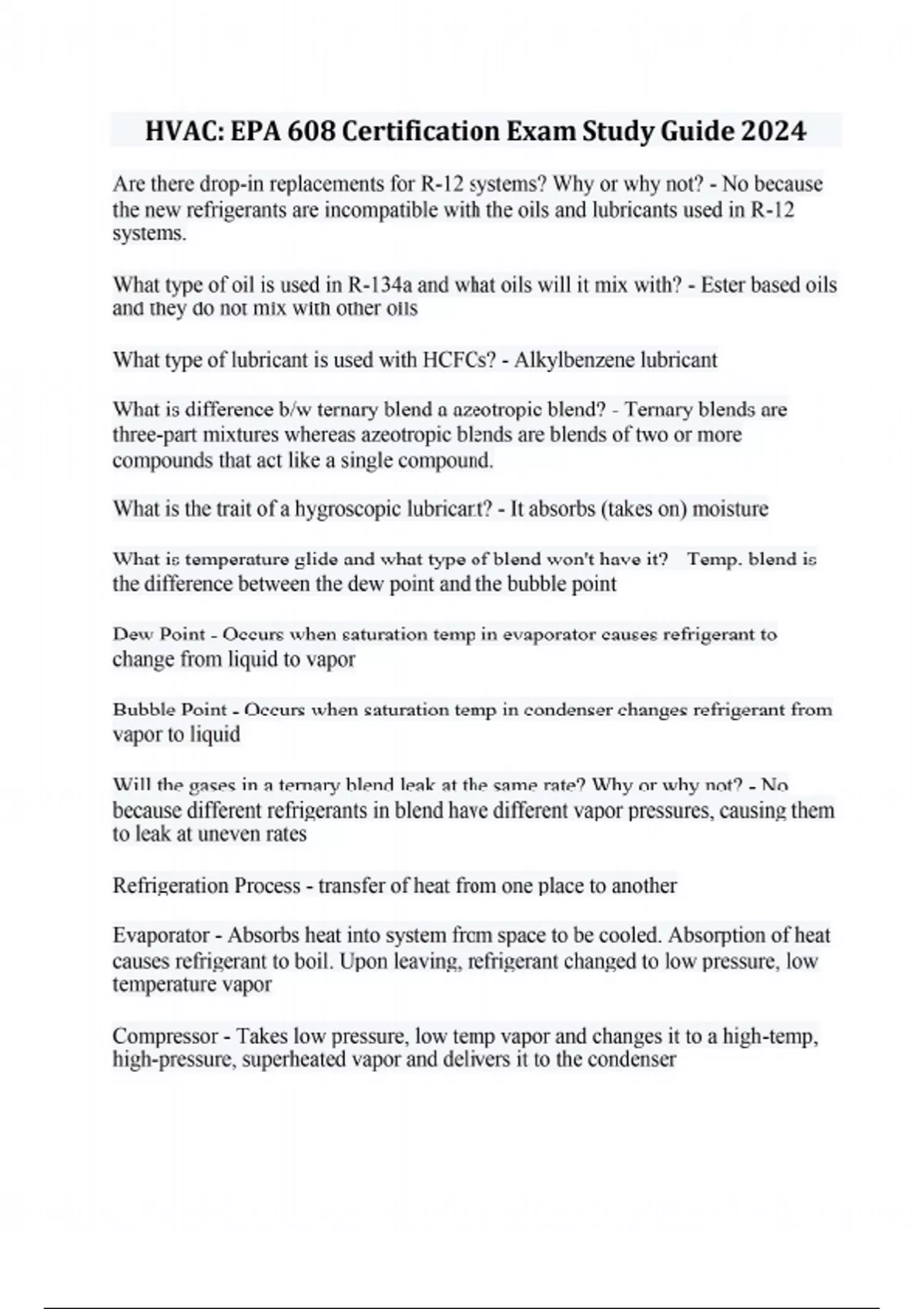 HVAC: EPA 608 Certification Exam Study Guide 2024