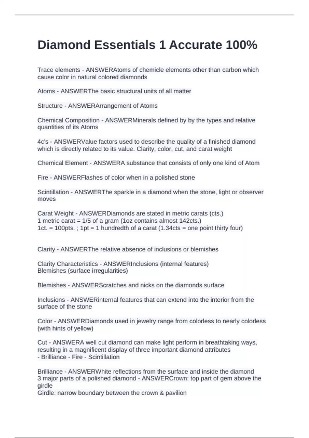 3 major parts of a polished diamond - ANSWERCrown: top part of gem above the