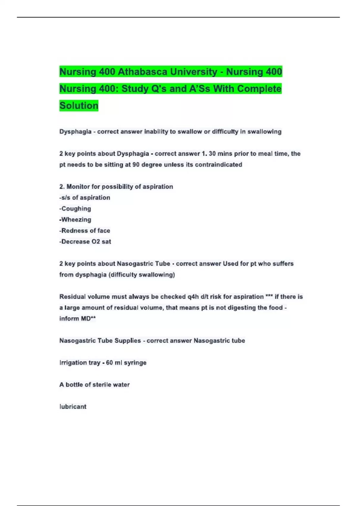 Athabasca University, Nursing 400 Final Exam combined study guides questions with Complete Solutions