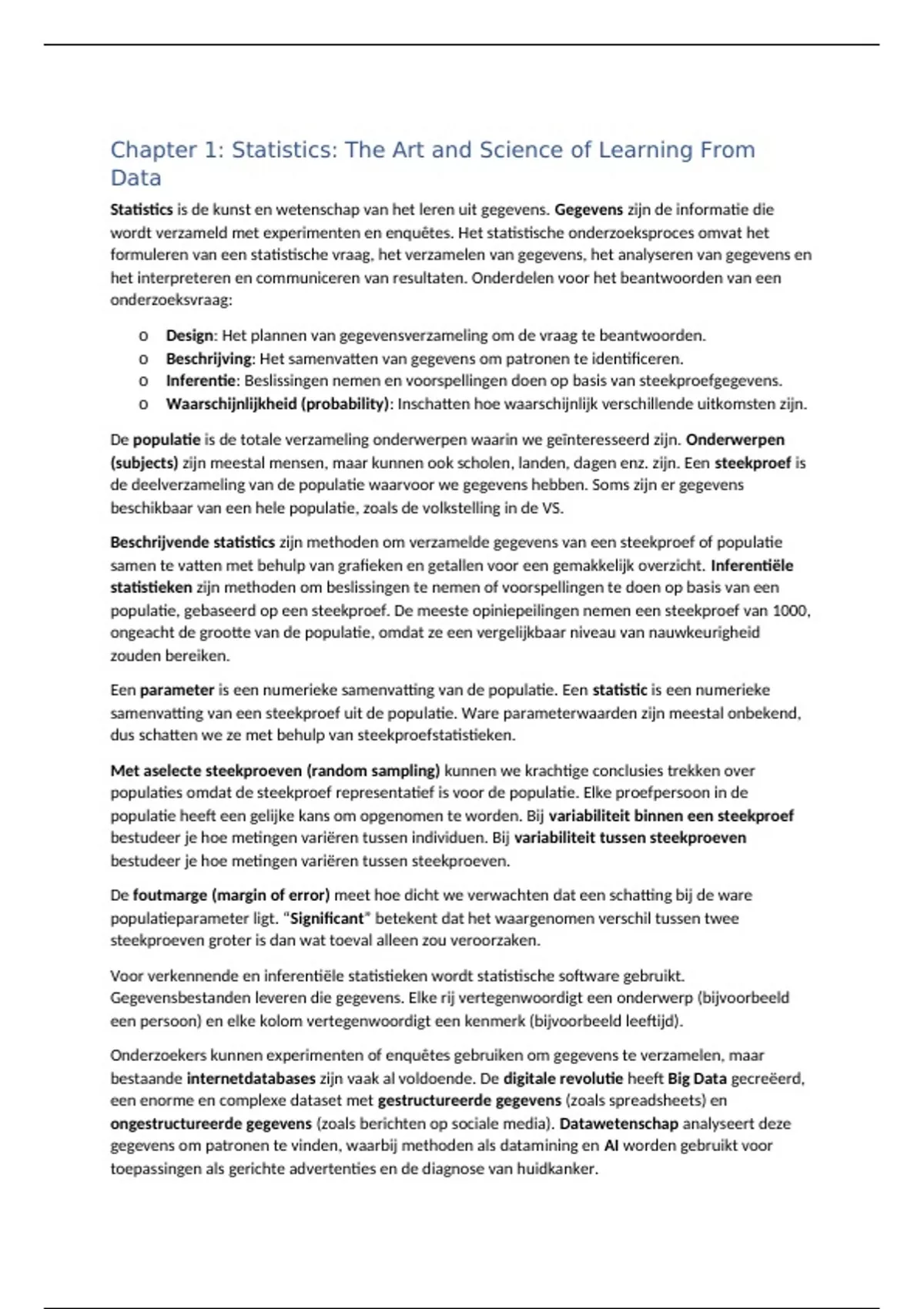 o Inferentie: Beslissingen nemen en voorspellingen doen op basis van steekproefgegevens.