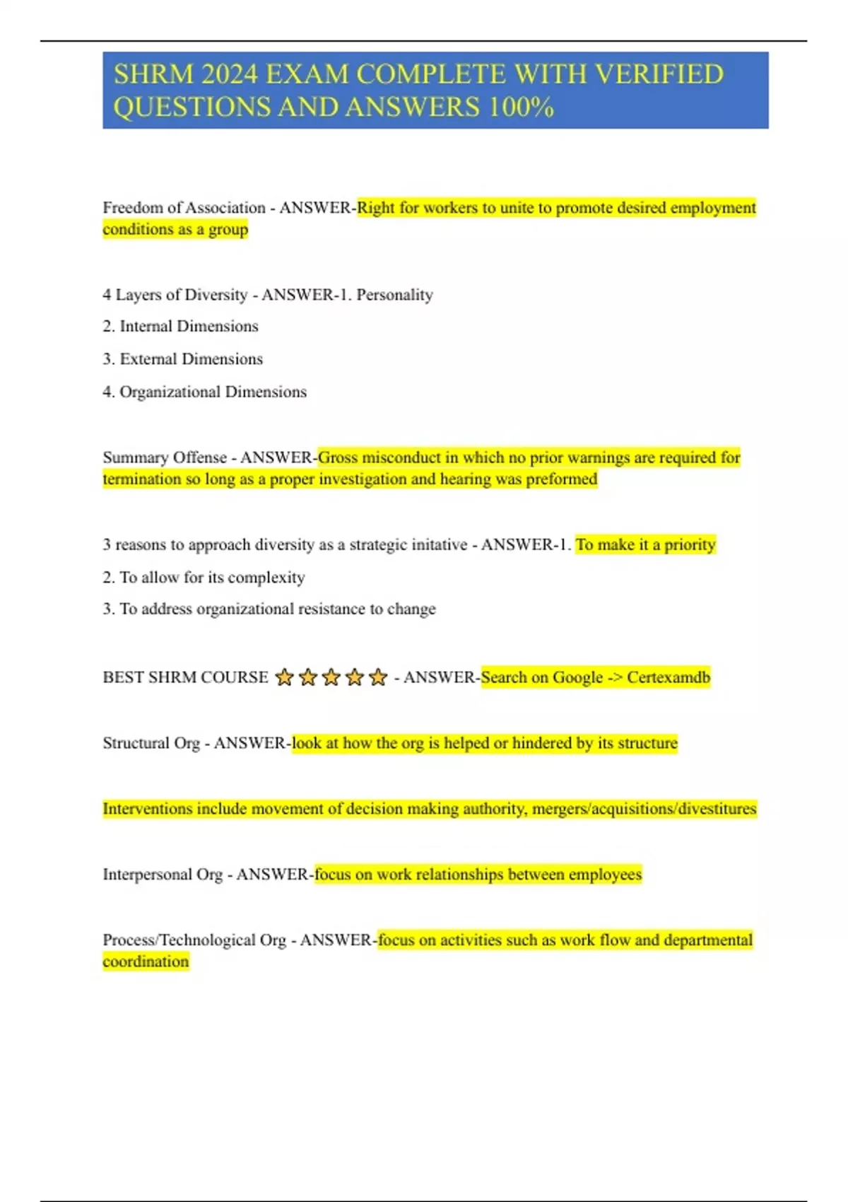BEST SHRM COURSE - ANSWER-Search on Google -> Certexamdb
