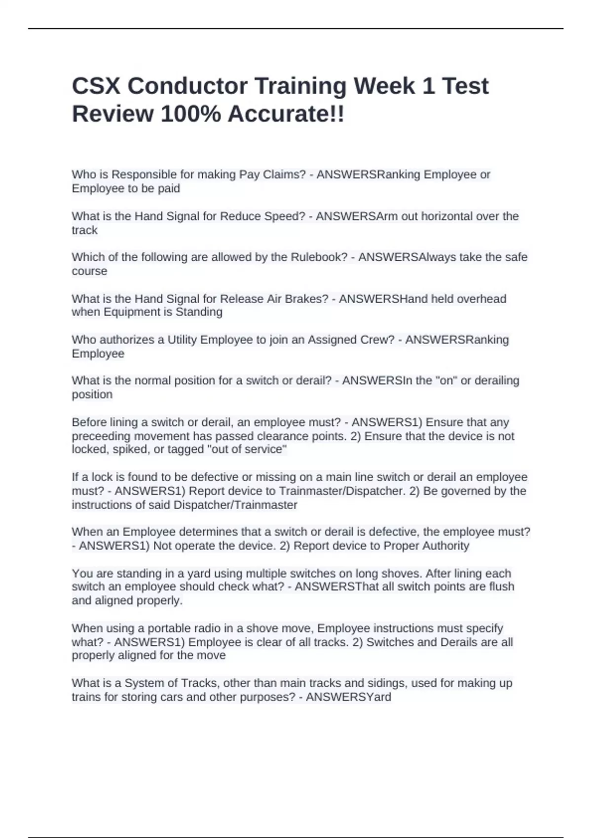 Before lining a switch or derail, an employee must? - ANSWERS1) Ensure that any