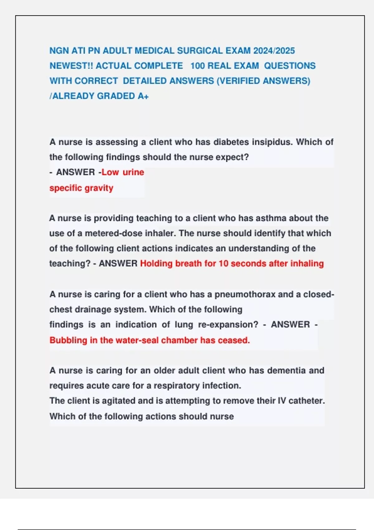 client. - ANSWER -Nurses Notes 0900: