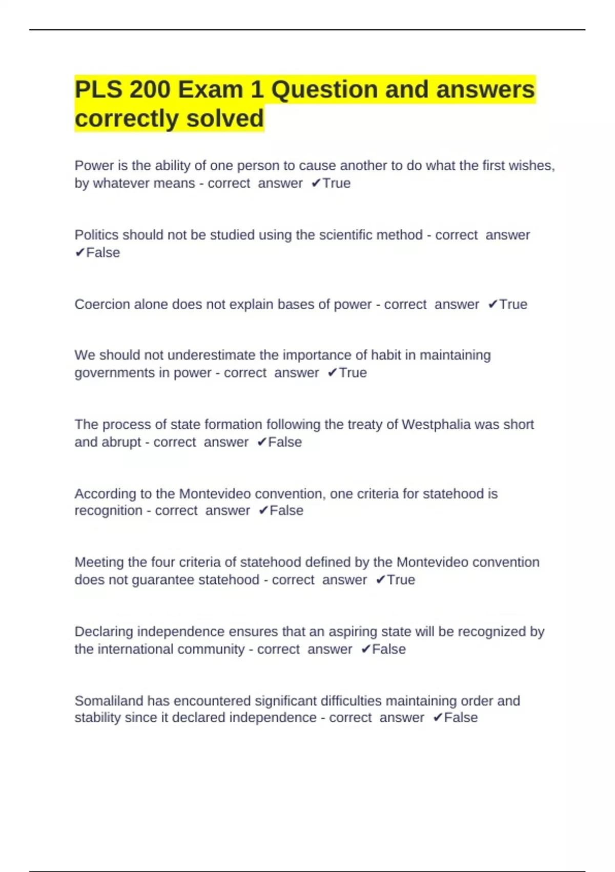 stability since it declared independence - correct answer ✔False
