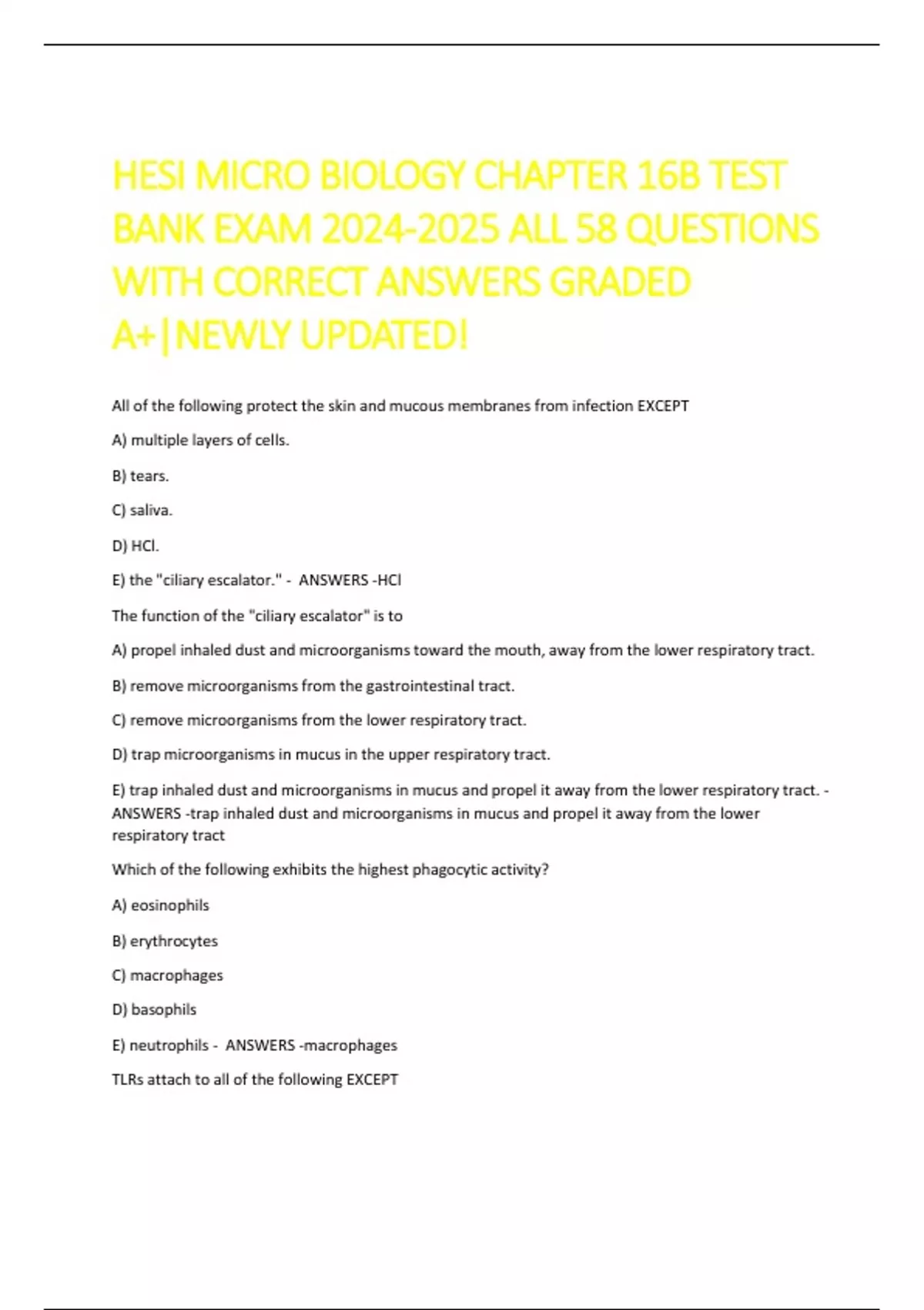 HESI MICRO BIOLOGY CHAPTER 16B TEST BANK EXAM ALL 58 QUESTIONS WITH CORRECT ANSWERS GRADED A+|NEWLY UPDATED