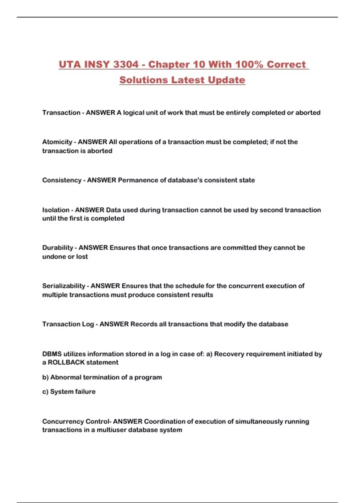 UTA INSY 3304 - Chapter 10 With 100% Correct