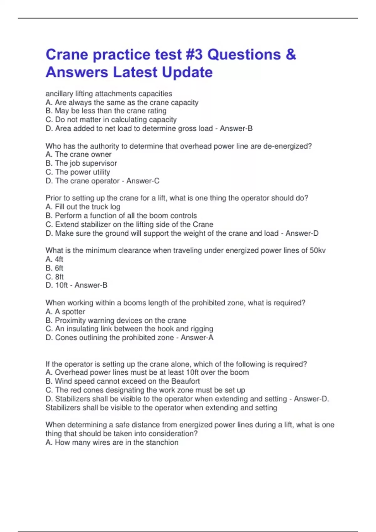 D. Make sure the ground will support the weight of the crane and load - Answer-D