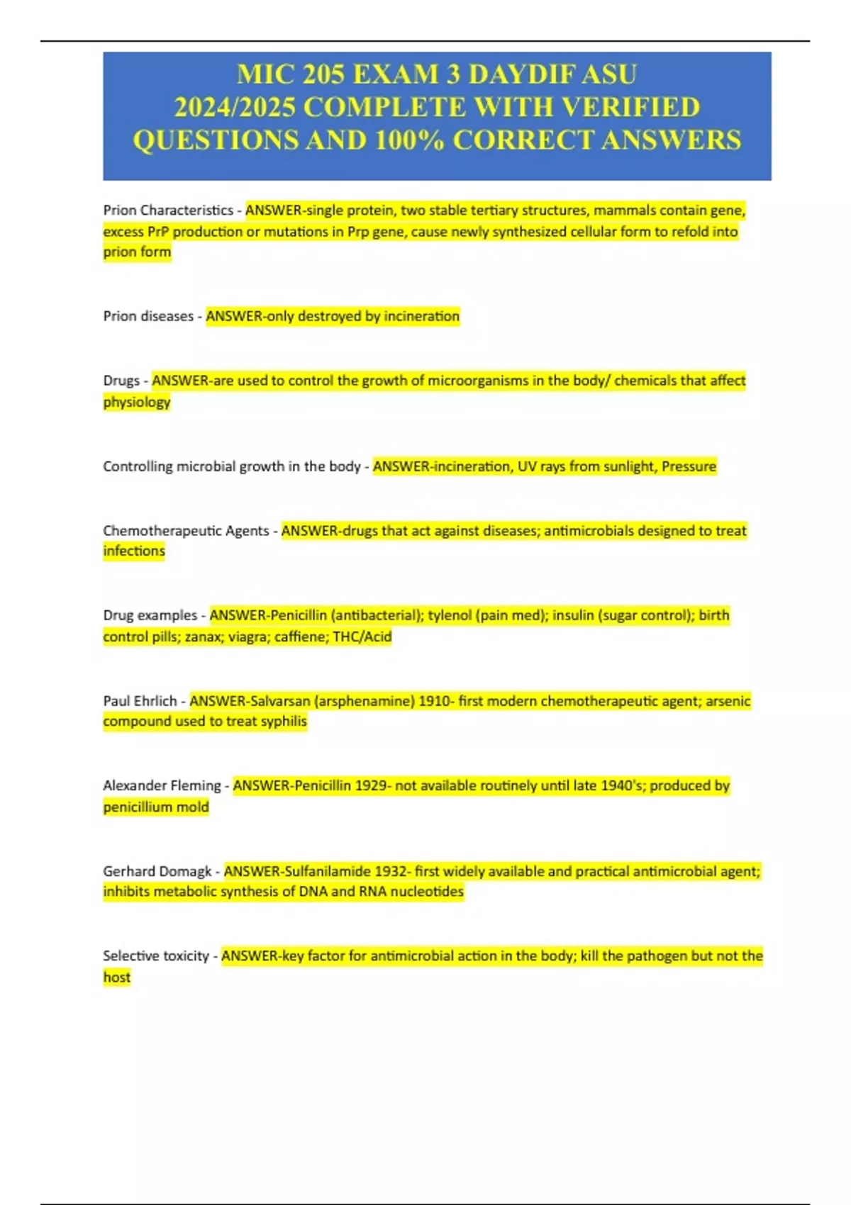 MIC 205 EXAM 3 DAYDIF ASU