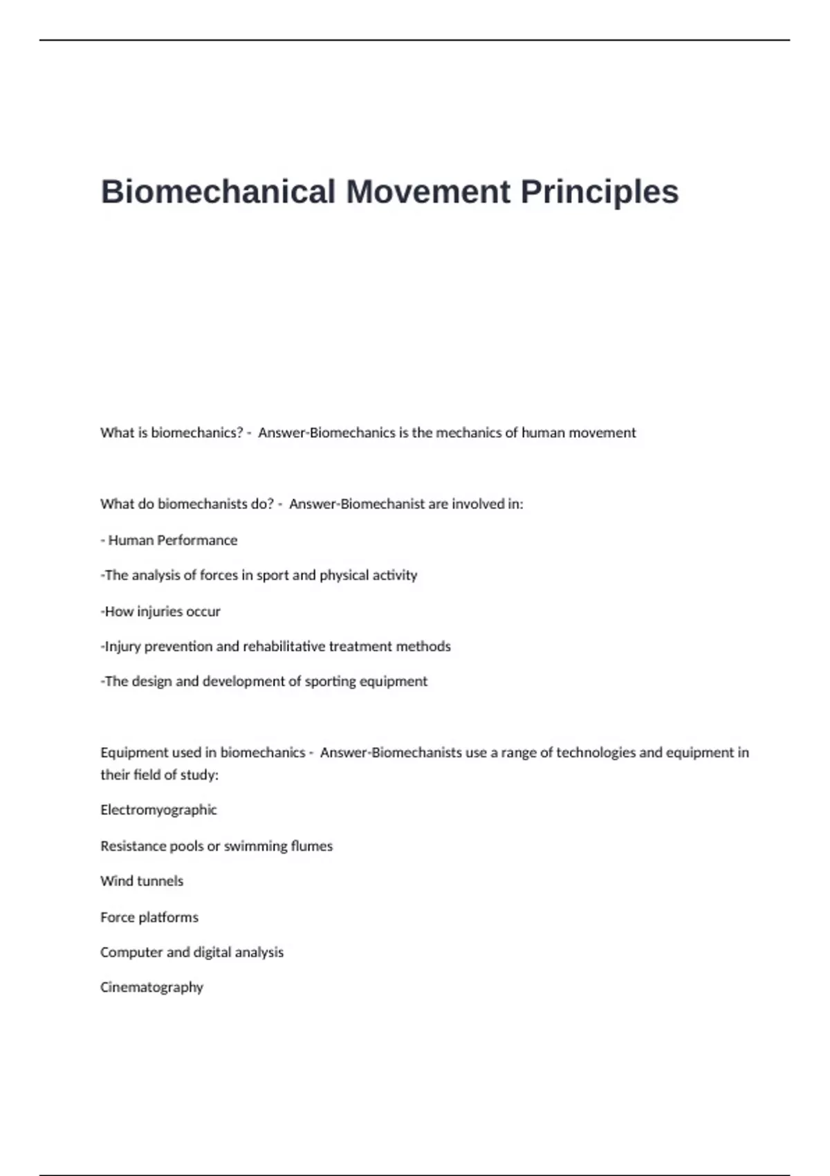What is biomechanics? - Answer-Biomechanics is the mechanics of human movement