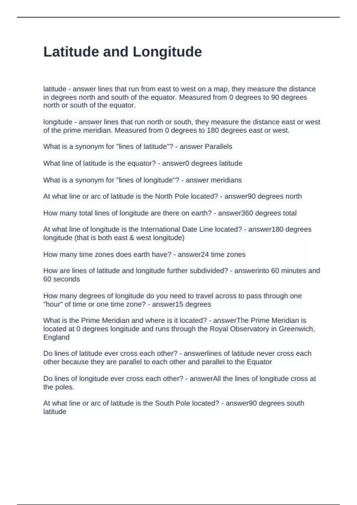 How many total lines of longitude are there on earth? - answer360 degrees total