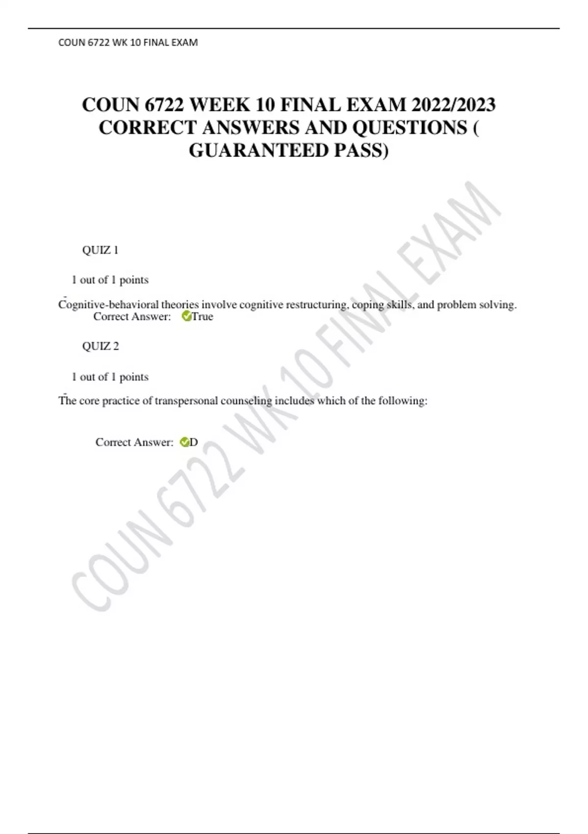 COUN 6722 WEEK 10 FINAL EXAM 2022/2023