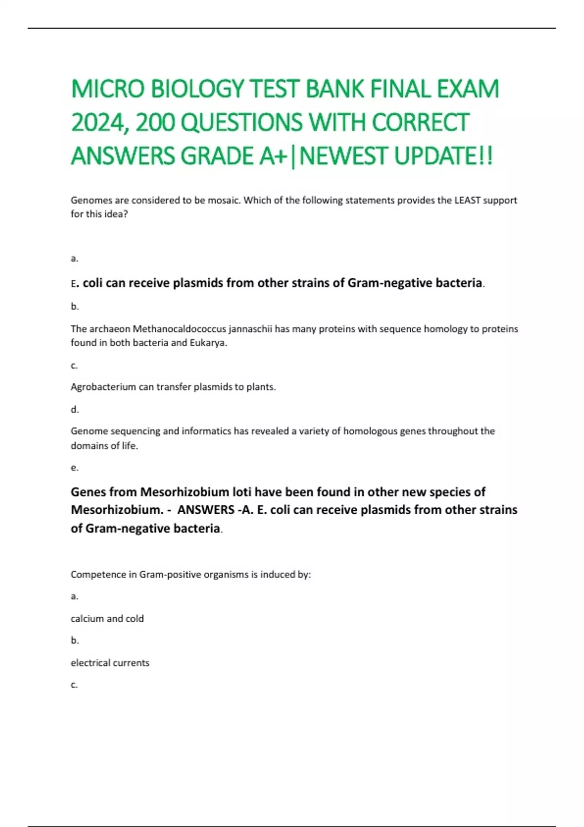 competence is not induced in Gram-positive bacteria - ANSWERS -c.
