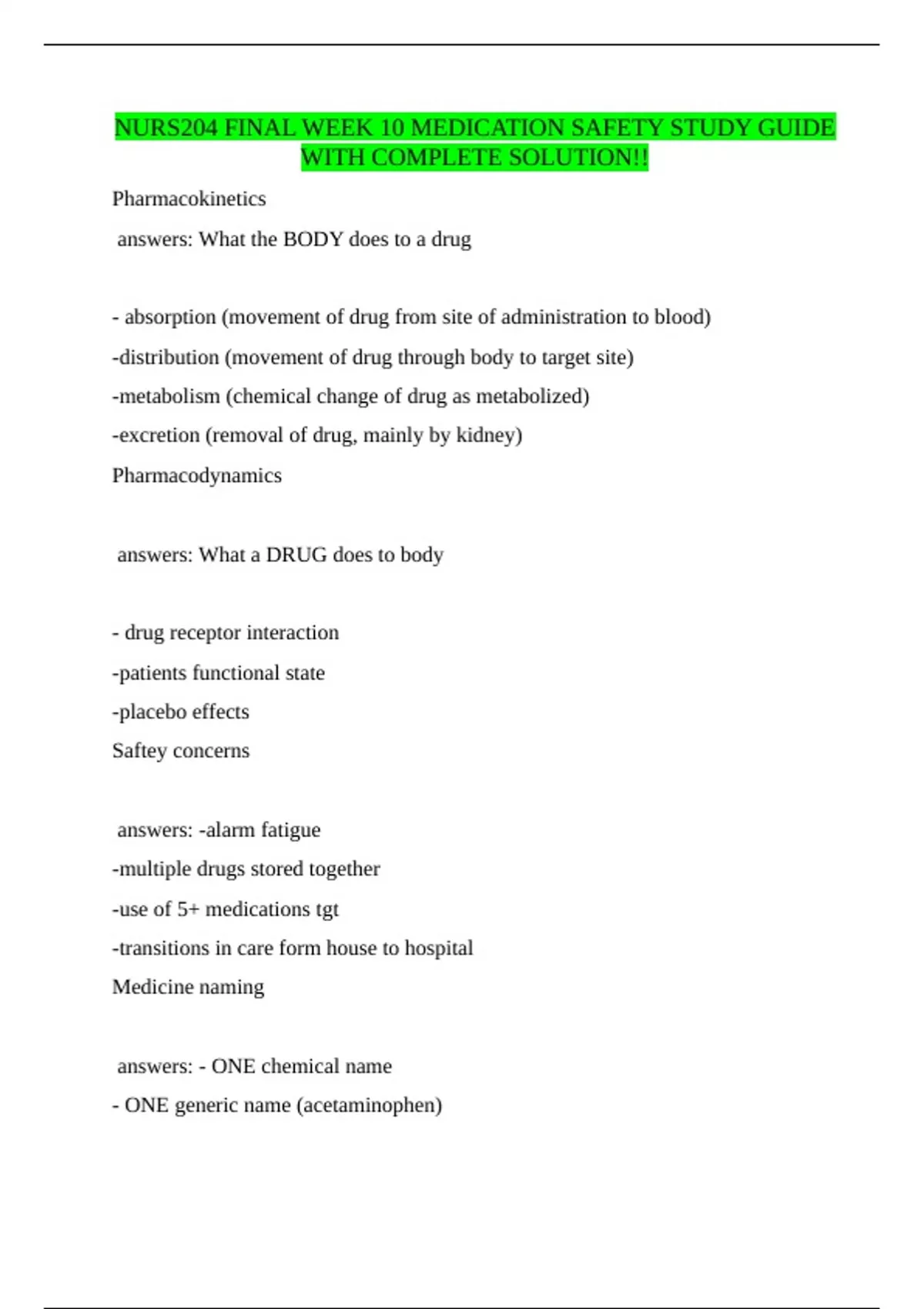 answers: What the BODY does to a drug