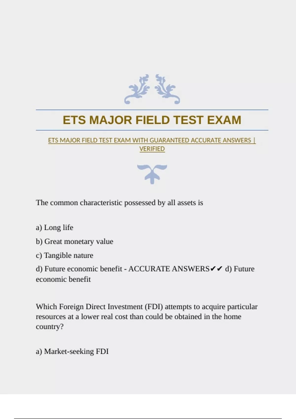 ETS MAJOR FIELD TEST EXAM WITH GUARANTEED ACCURATE ANSWERS |