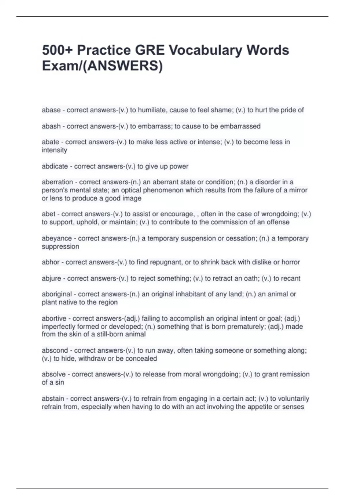 abase - correct answers-(v.) to humiliate, cause to feel shame; (v.) to hurt the pride of