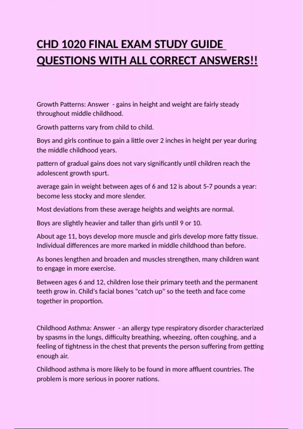 CHD 1020 FINAL EXAM STUDY GUIDE QUESTIONS WITH ALL CORRECT ANSWERS!!
